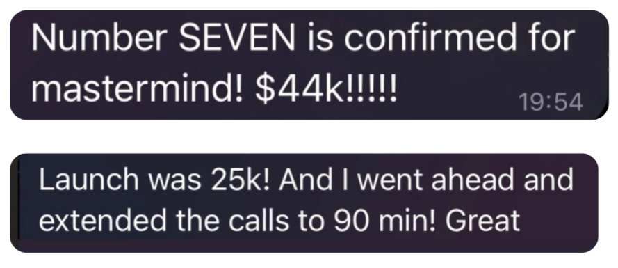 Want eyes on your copy, content, and branding? You’ve got it! I’ll be there to help you fine-tune your messaging and materials through an always-open Telegram group. Whether it’s a sales page or social media post, you’ll get feedback that helps you attract the right clients and increase conversions.30+ Hours of Multi-Six-Figure Level Content: